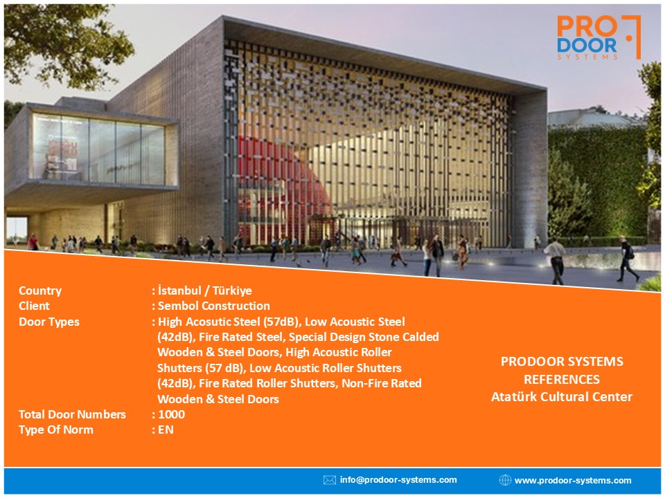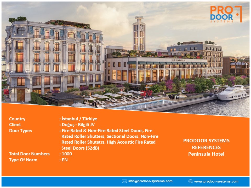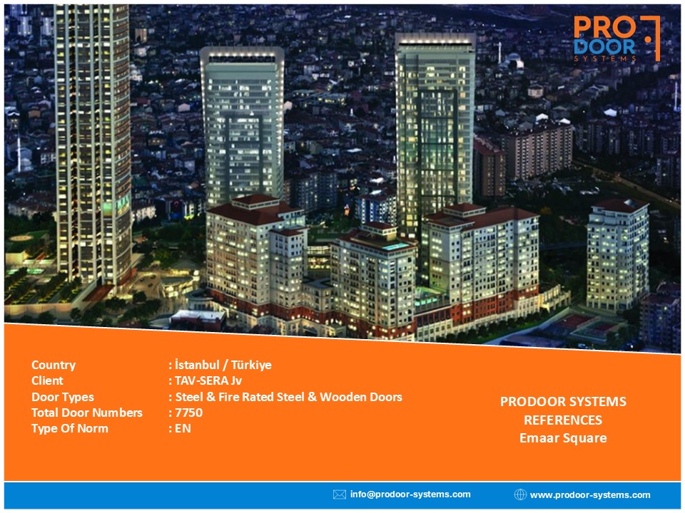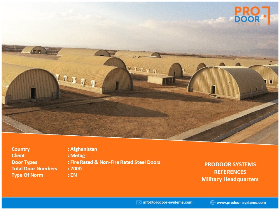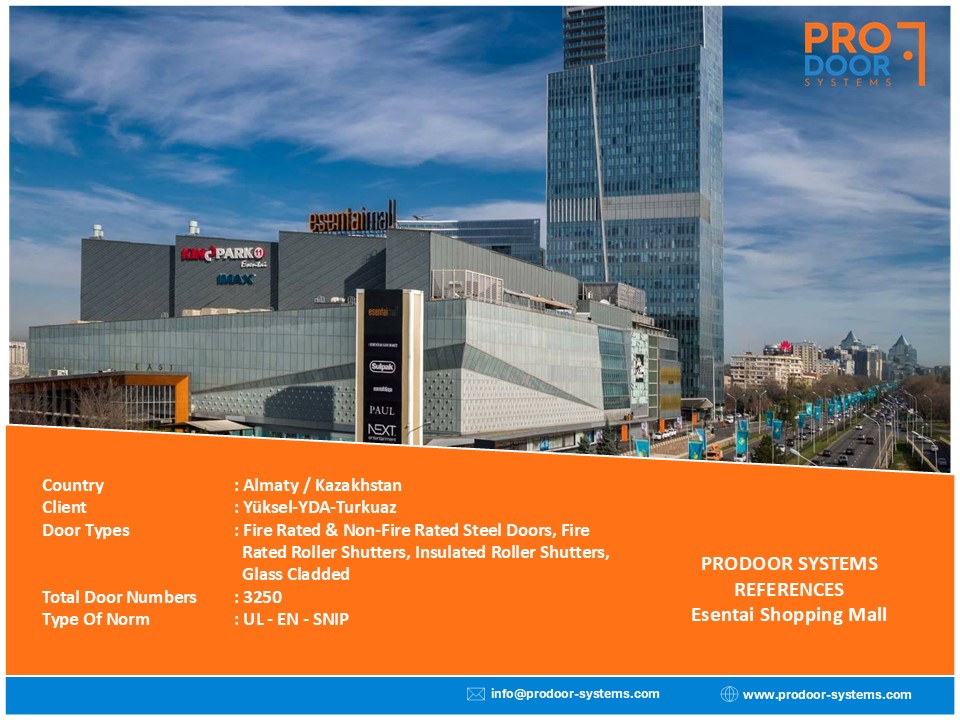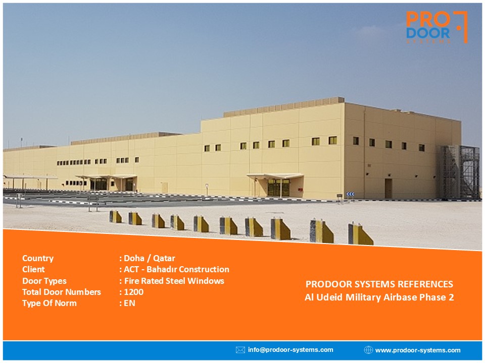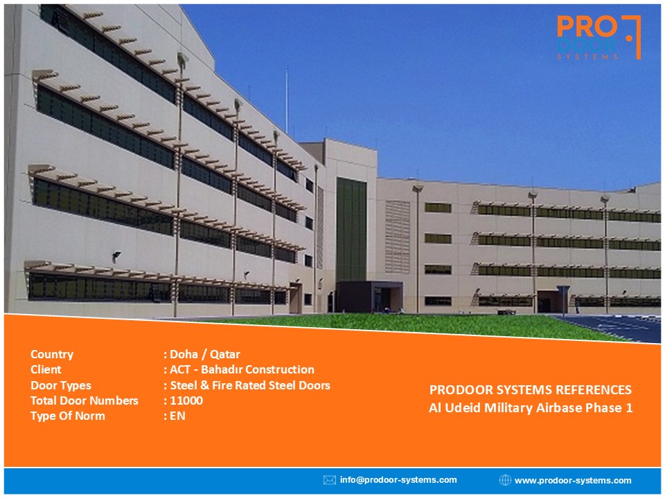 Door Types: High Acosutic Steel (57dB), Low Acoustic Steel (42dB), Fire Rated Steel, Special Design Stone Calded Wooden & Steel Doors, High Acoustic Roller Shutters (57 dB), Low Acoustic Roller Shutters (42dB), Fire Rated Roller Shutters, Non-Fire Rated Wooden & Steel Doors